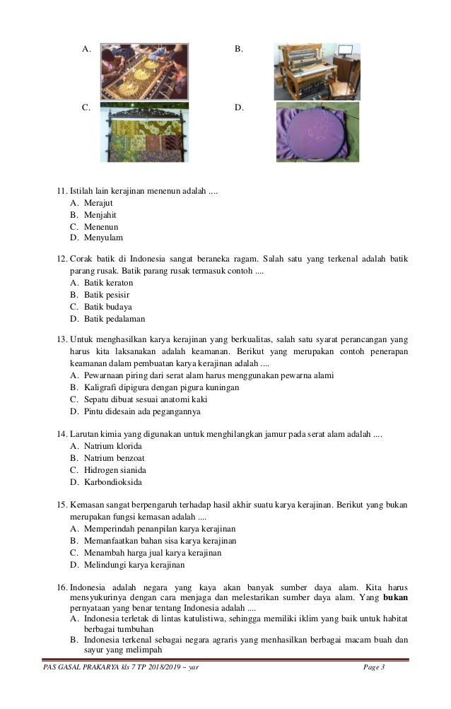 Download soal dan kunci jawaban kerajinan bahan lunak.
