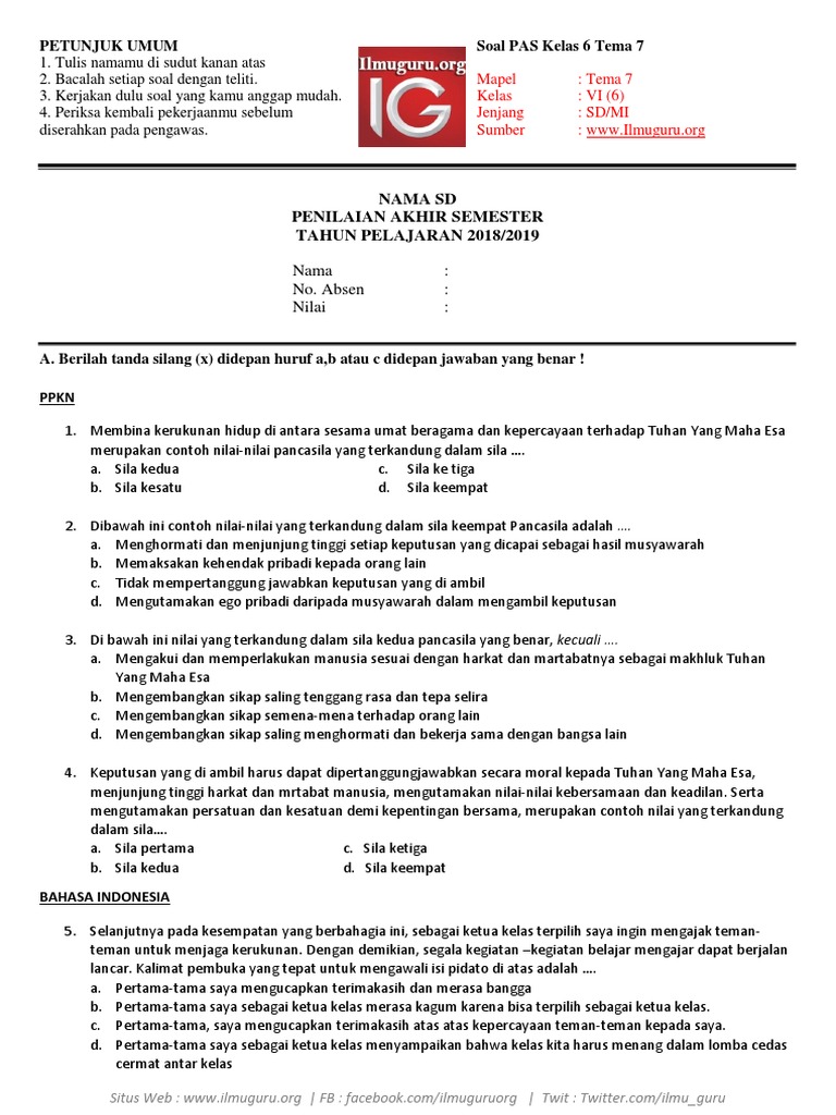 Bagi sahabat yang berlum sempat untuk membaca dan mempelajarinya. Feb 03, 2021 · soal tema 7 kelas 6 revisi 2018. By websiteedukasi.com posted on january 27, 2021. Soal tematik kelas 6 tema 7 (bahasa indonesia) dan kunci jawaban. Jan 29, 2021 · soal kelas 6 tema 7 subtema 1 revisi 2018. Jan 14, 2021 · soal tersebut kami simpan dengan folder rar, untuk membuka filenya harus di exstrak terlebih dahulu. Jumlah soal pilihan ganda : 20210326 contoh soal pts tema 6 kelas 5 semester genap 2020 di 2020 fotosintesis guru belajar. Jumlah soal isian singkat : Untuk soal soal kelas 6 tema 7 kepemimpinan subtema 1 ini kami hanya menyediakan 25 soal pilihan ganda, 10 soal isian dan 5 soal uraian. Bimbingan belajar brilian soal kelas 3, soal kelas 6 sd, soal tema 7, soal tematik. Berikut ini adalah contoh latihan soal tematik kelas 6 tema 7 kompetensi dasar ips untuk tahun ajaran 2019/2020 lengkap dengan kunci jawaban. Jan 27, 2021 · soal pat kelas 6 tema 7 dan kunci jawaban tahun 2021.