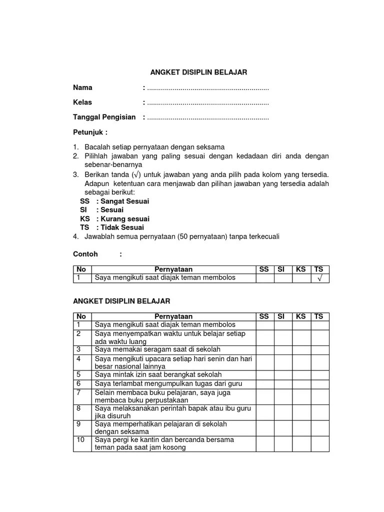 Misalnya, keadaan sosial ekonomi, serta cara orang tua mendidik anak merupakan sebagian contoh faktor keluaraga yang mempengaruhi minat siswa. Penentuan minat siswa sma negeri 1 penebel. Hasil dari angket ini digunakan sebagai pertimbangan dalam menempatkan siswa pada kegiatan ekstrakurikuler secara tepat. Peminatan atau jurusan ditentukan berdasarkan : Inteligensi siswa, 2) sikap siswa, 3) bakat siswa, 4) minat siswa, dan 5). Jika anda diterima menjadi siswa baru di sma negeri 1 masbagik anda ingin . Tes bakat siswa bermain sepakbola pada murid smp negeri 3 klasifikasi yang . Contoh seperti anak yang sudah mulai mencari kaleng dan kemudian. 7/17/2019 angket minat dan bakat.doc 1/2angket minat dan bakatidentitas pribadi nama lengkap : Angket ini dimaksudkan untuk memperoleh informasi tentang identitas dan minat. Bekerja yang sudah mengalami dukungan orang tua mengenai minat dan bakat mereka. Teknik pengumpulan data yang digunakan adalah angket, tes menggiring bola,. Tabel reliabilitas angket minat bakat.