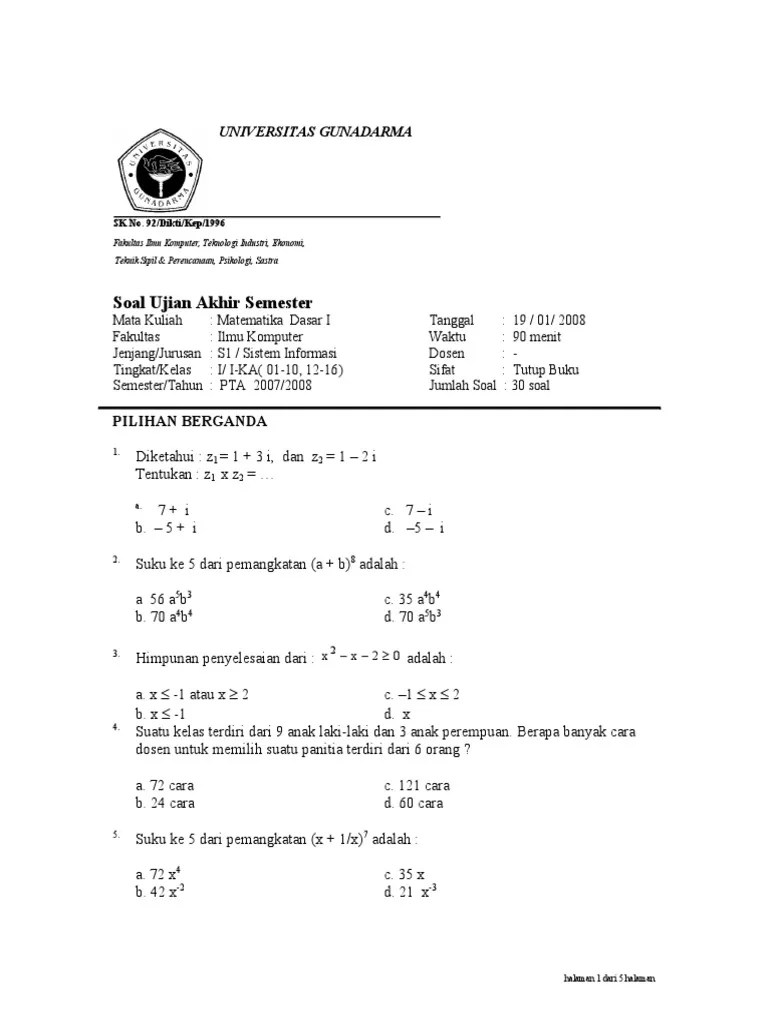 Soal Uas Matematika Doc / Soal Uas Matematika Sd Kelas 4 Semester 1 Pdf Google Drive : Berikut ini adalah rincian soal uas matematika .